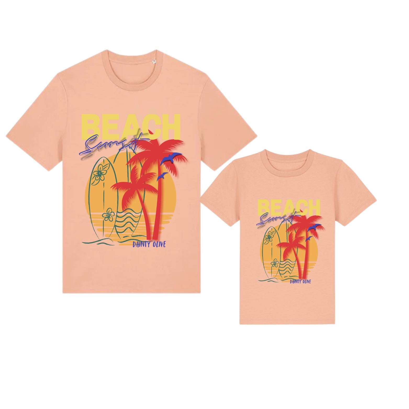 Beach Sunset - Crafted from 100% organic compact ringspun cotton Matching Tee for Parent and Child. Both options are Unisex.