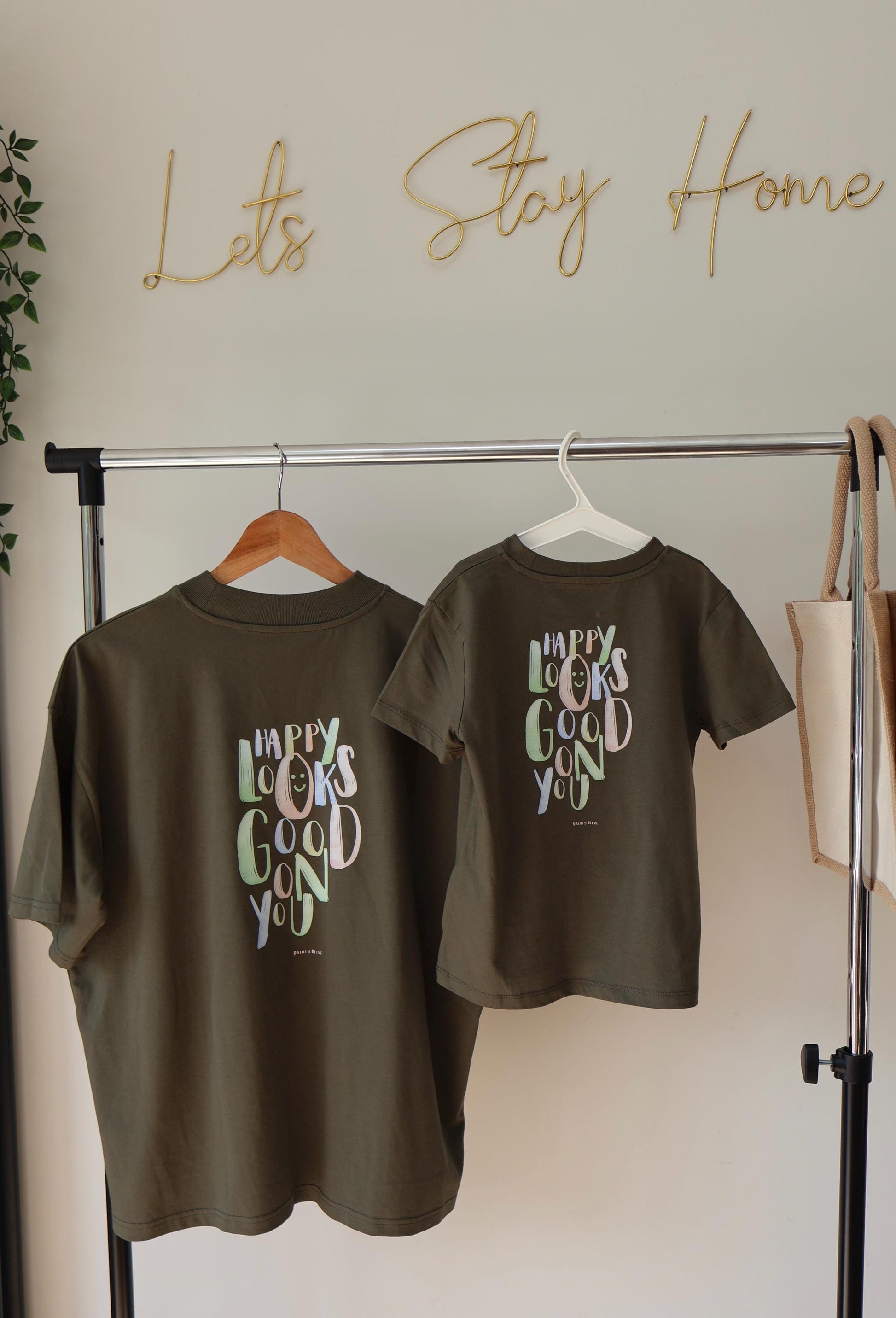 Happy Looks Good On You - Crafted from premium 100% organic cotton Matching Tee for Parent and Child. Both options are Unisex.