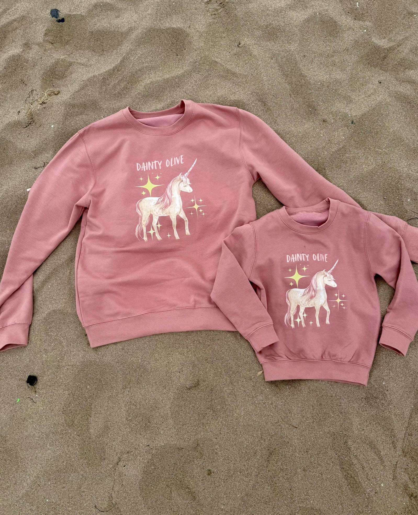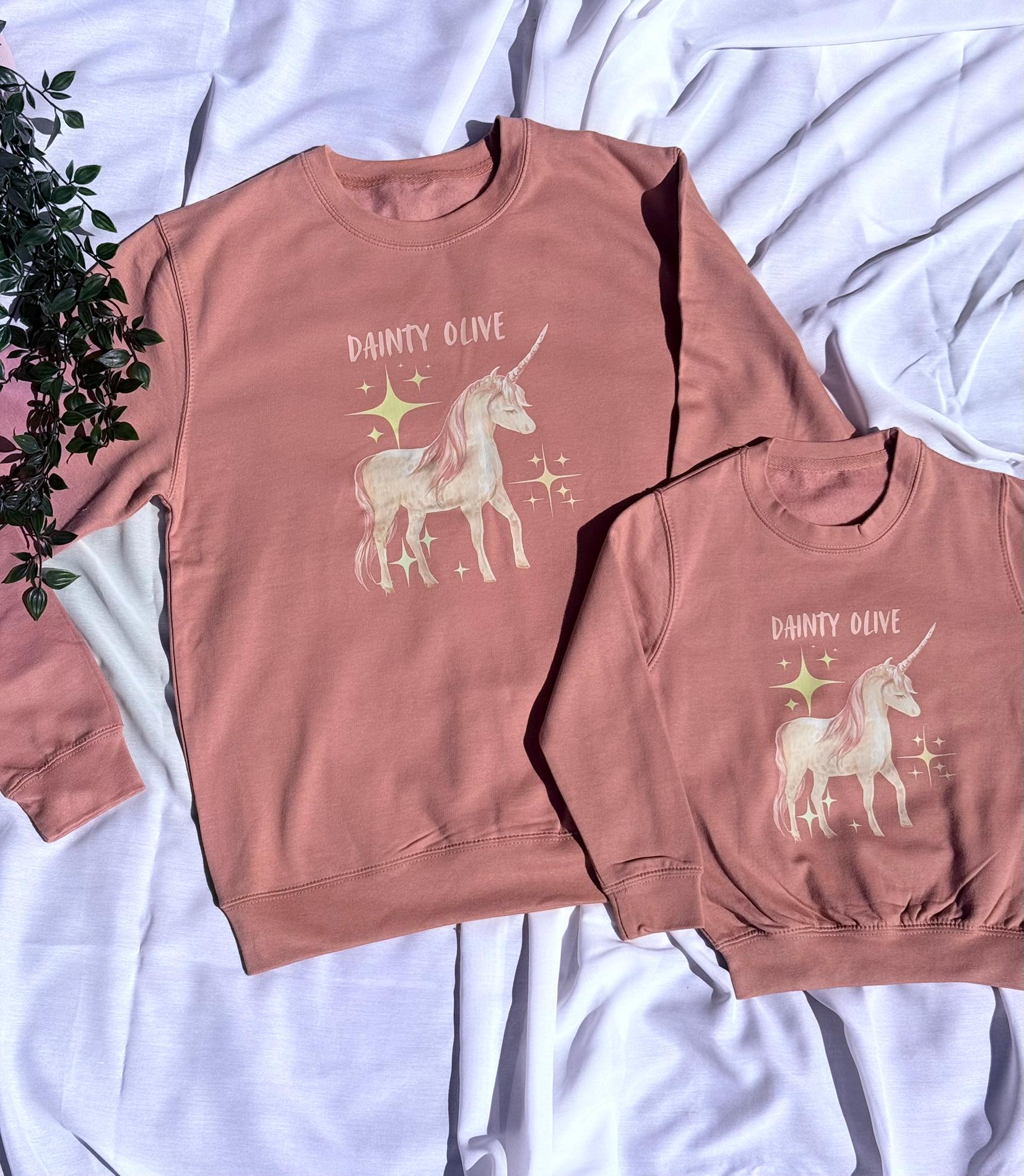 Pretty Unicorn Matching Jumper for Parent and Child. Both options are Unisex.