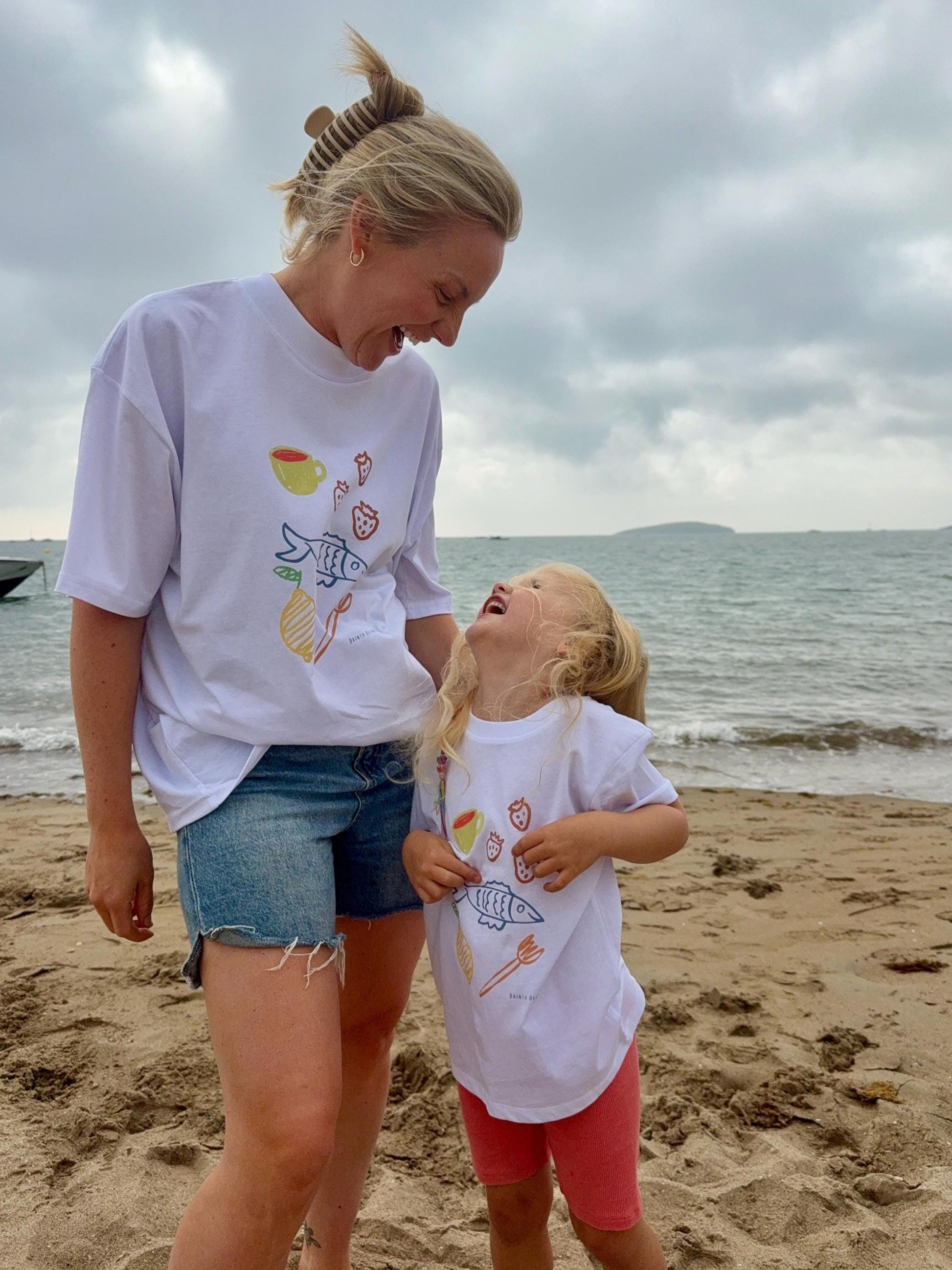 The Alresco Tee - Crafted from premium 100% organic cotton Matching Tee for Parent and Child. Both options are Unisex. Sizing reference in Picture - Mum typically size 8-10 and is in Small, child is in age 5-6
